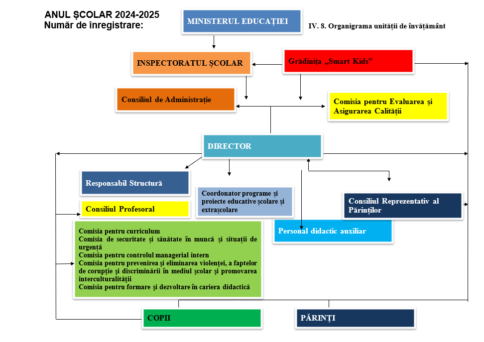 • Regulamentul Intern al Grădiniței „Smart Kids” avizat în cadrul Consiliului Profesoral și aprobat în Consiliul de Administrație;